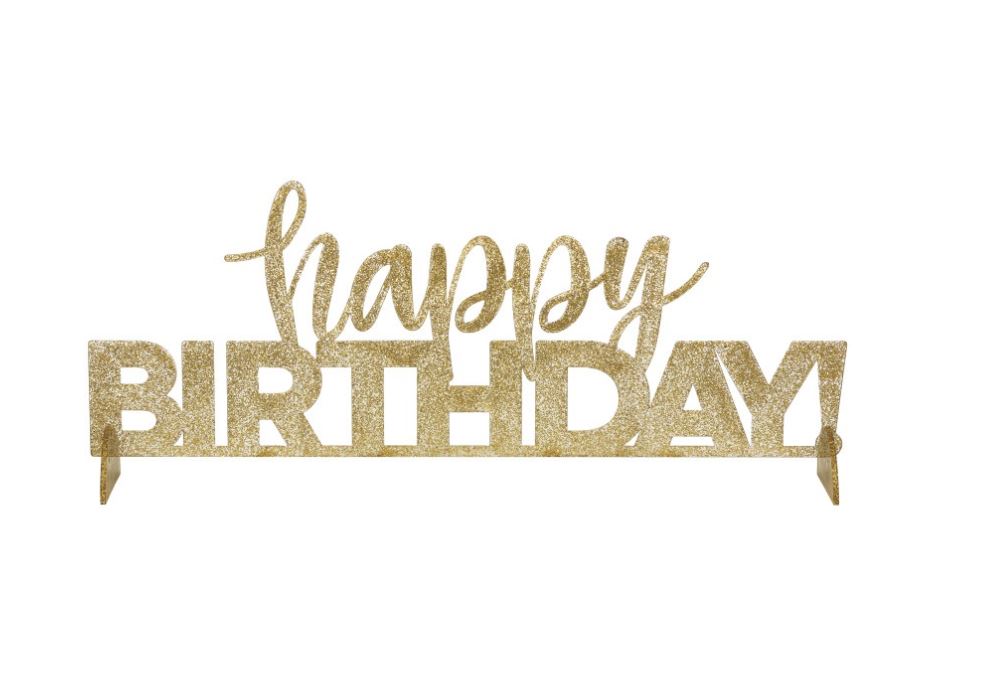 Gold Foil Flecked "Happy Birthday" Clear Acrylic Centerpiece