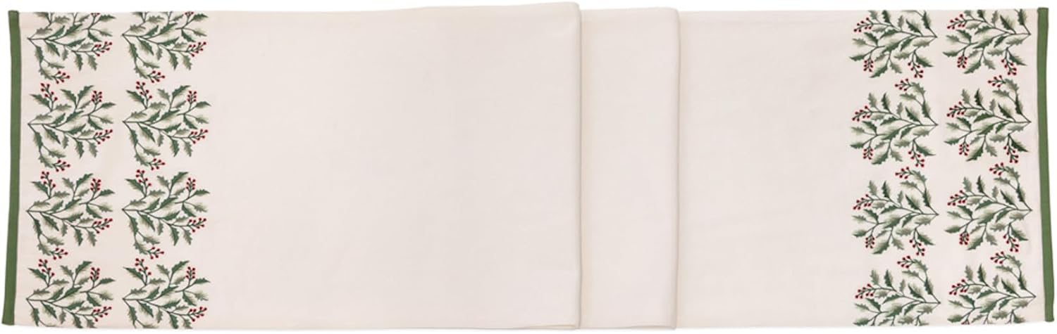 Cotton Table Runner Dining Room Tabletop Decorations for Home and Tablescapes, 14" x 72", Holly