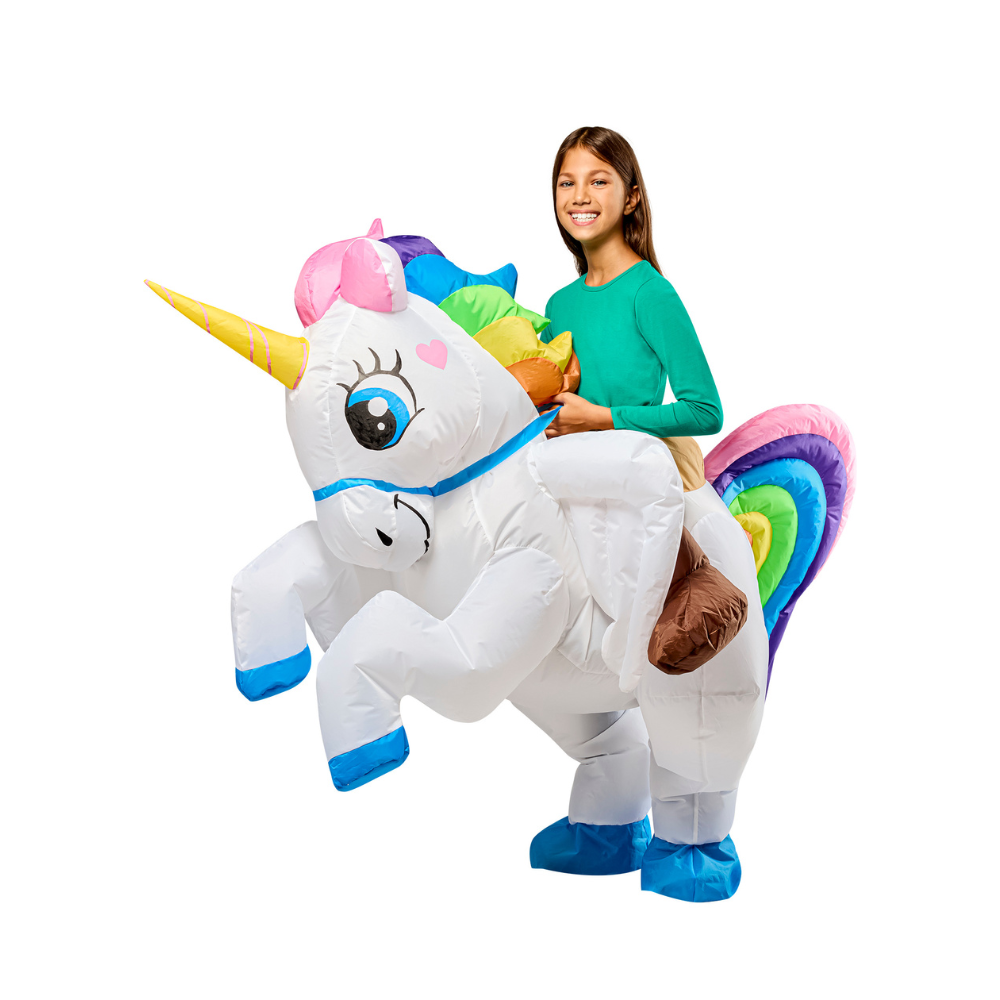 ✨ Let your little one ride in style with this adorable and magical Unicorn inflatable ride-on costume! Perfect for Halloween, costume parties, or any event where your child wants to stand out and spread some enchantment. ✨