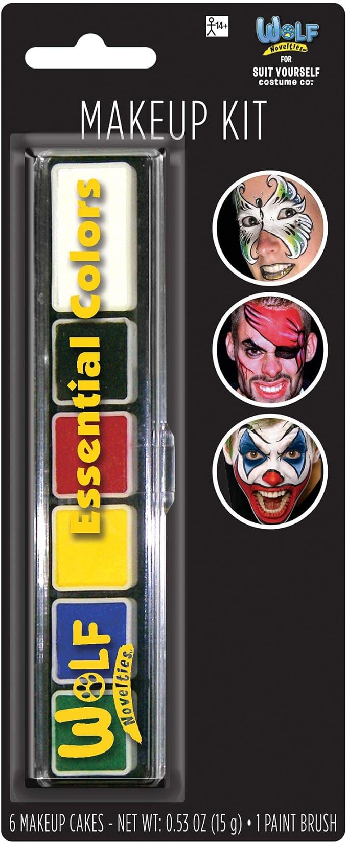 Add a dash of color to your creative DIY Halloween costume using this primary Colors makeup kit! This makeup kit includes a makeup tray with black Blue Green Red white and yellow makeup cakes. The kit also includes a makeup brush. Use this kit to create a unique and colorful look for Halloween or any other special event you want to dress