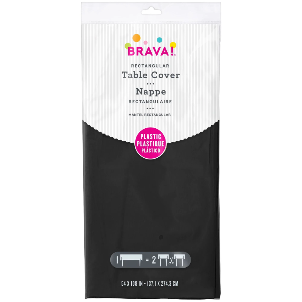 This versatile black plastic table cover measures 54 inches wide by 108 inches long, making it ideal for standard rectangular tables. Crafted from durable plastic material, it's designed for repeated use across multiple events and occasions. The waterproof surface protects your tables from spills, stains, and weather elements, performing equally well in indoor banquet halls or outdoor garden settings. Simply wipe clean after use for effortless maintenance. Perfect for parties, weddings, corporate events, or everyday dining protection.