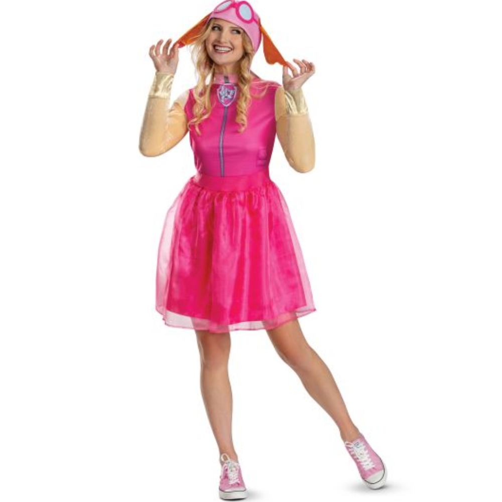 Get ready to soar into fun this Halloween with the officially licensed Skye Classic Costume for Adults from Paw Patrol. This vibrant pink dress with a vinyl badge and matching headpiece will make you the hero of the party. Perfect for creating paws-itively amazing memories. Take off into action and grab yours today from Party Expert to make your Halloween adventures unforgettable.