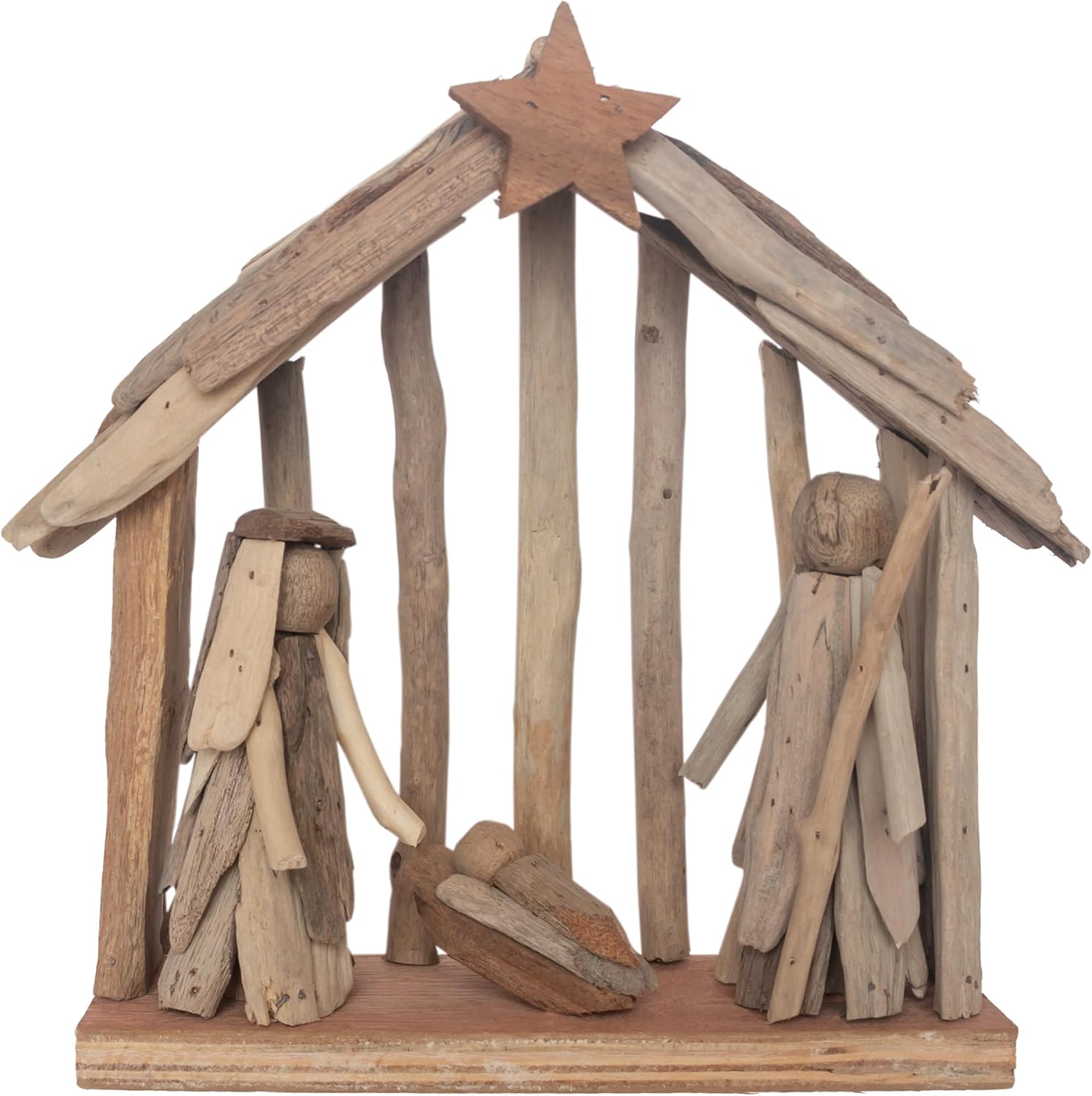 Christmas Statue Tabletop Figurine Winter Holiday Decorations, 11" x 10.25", Driftwood Nativity Scene