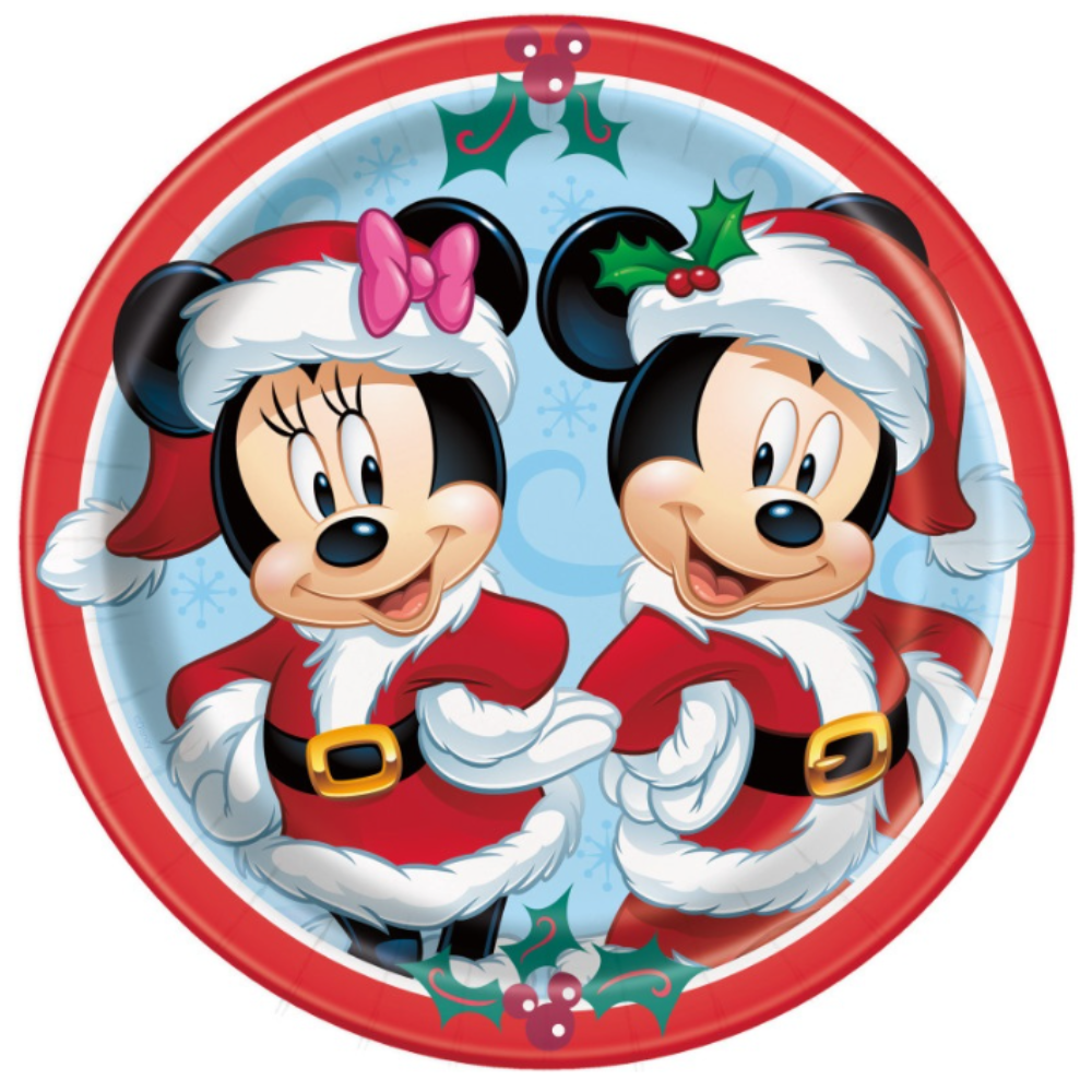 Disney Mickey & Minnie Mouse Christmas Round 9" Dinner Plates 8ct