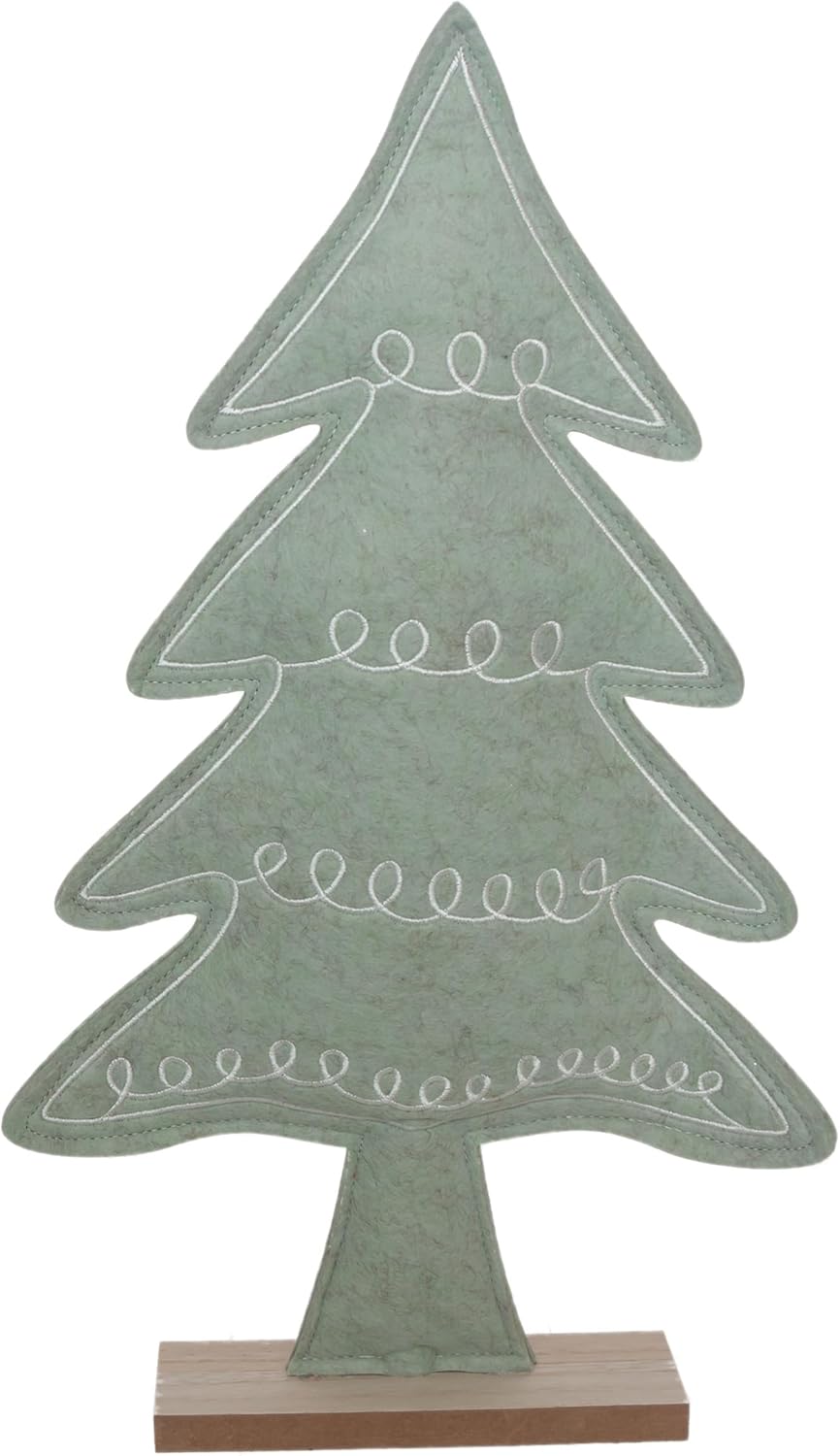 Felted Christmas Tree Winter Holiday Decorations for Home, 15.5", Green Felted Tree with Swirl Stitching