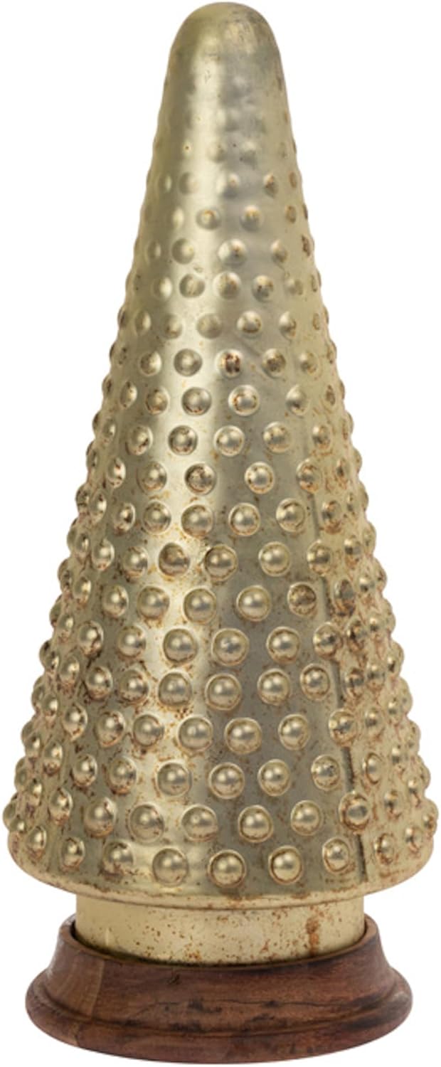 Glass Christmas Tree for Tabletop Mantel Shelf Winter Holiday Decorations for Home, Small, Nobby Burnished Gold