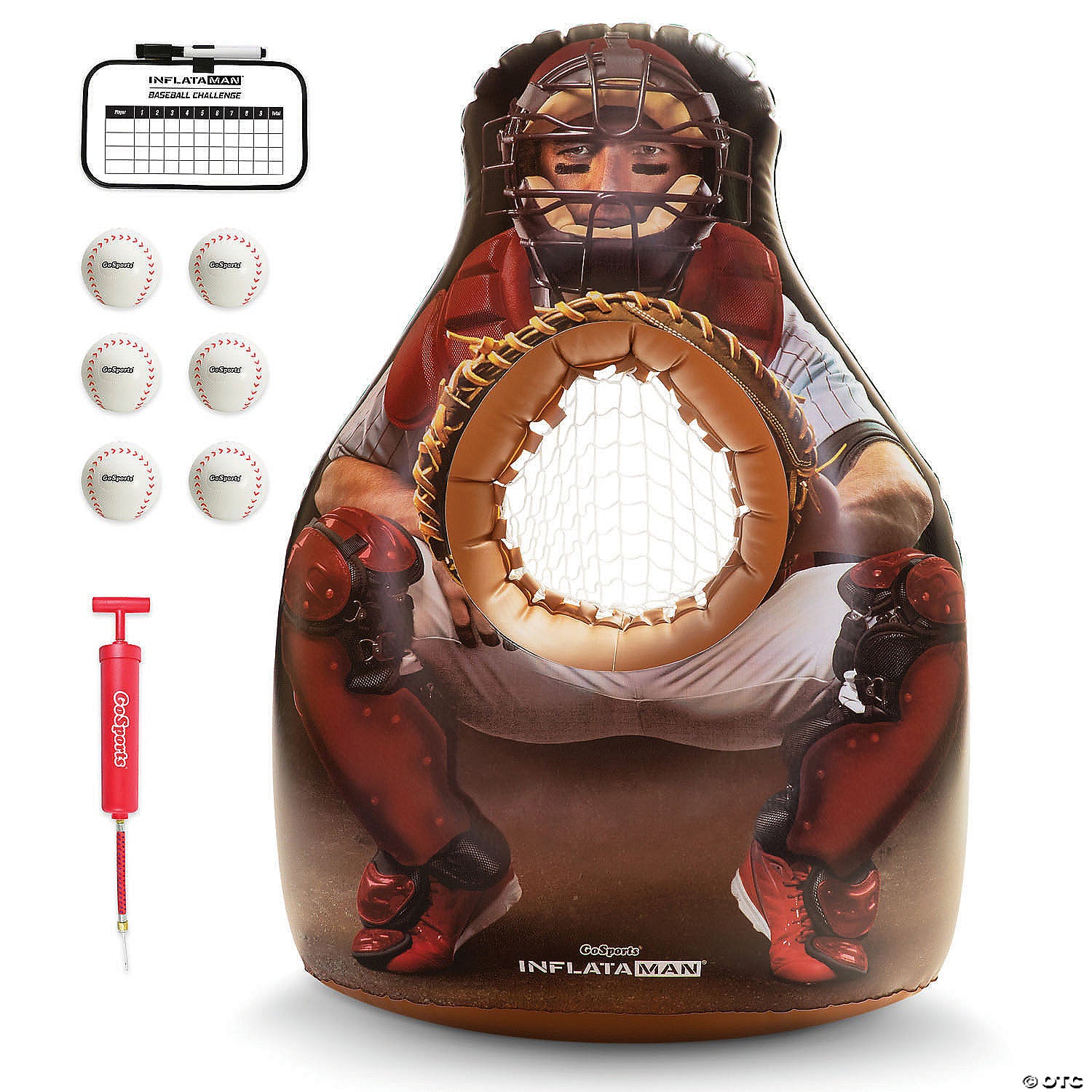 The GoSports INFLATAMAN Baseball Challenge is the ultimate pitching showdown in which players have 9 innings to throw the most strikes into the catcher's net and claim the title of MVP. Inflatable Catcher Strike Zone Pitching Game. Gather up to 4 players and windup a fastball for you turn on the mound and see who can pitch the best game! Players will alternate pitching 6 baseballs while keeping track of successful strikes on the included dry erase scoreboard. Each turn is one inning on the board and the pitcher with the most points after 9 innings wins. Now step up to the mound and play ball with the GoSports INFLATAMAN Baseball Challenge! Special Shipping Information: This item ships separately from other items in your order. This item cannot ship to a P.O. Box. This item may be subject to additional processing days. ITEM IS NOT ELIGIBLE FOR EXPEDITED SHIPPING
