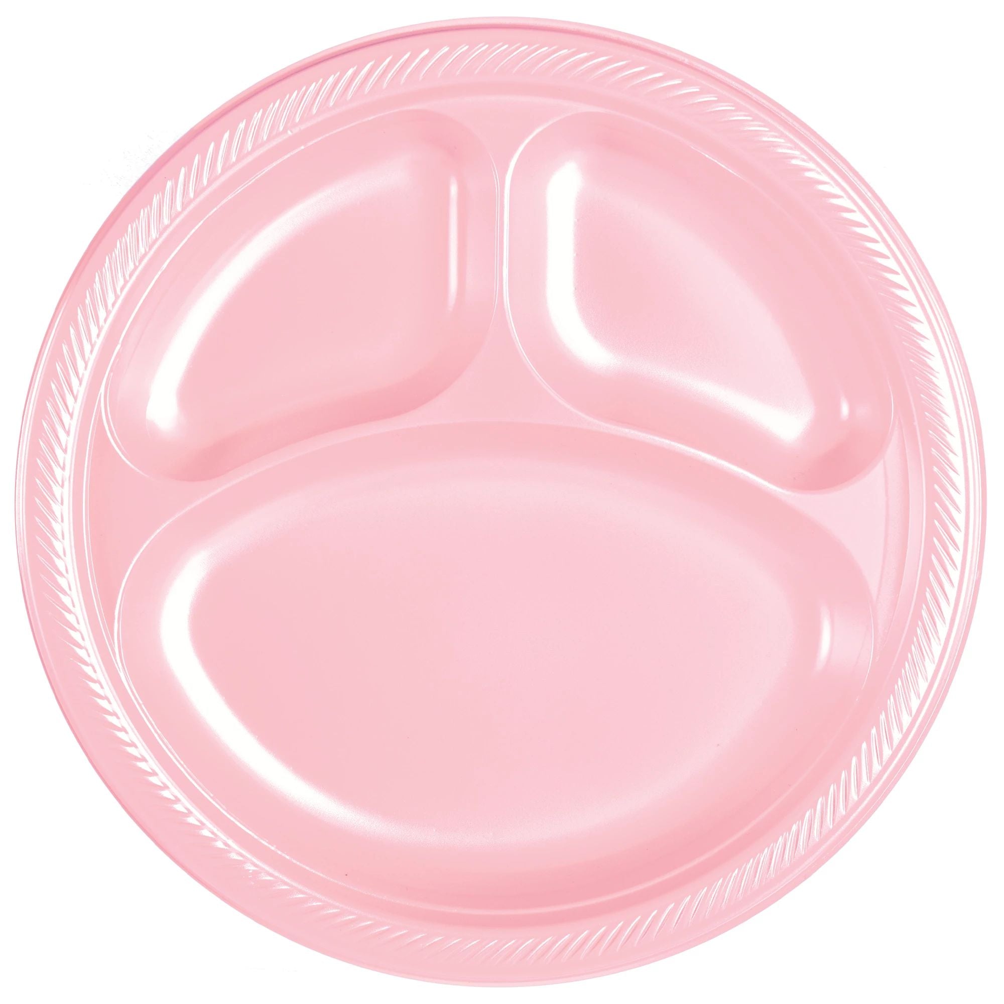 Divided 10.25" Plastic Plate 20 Ct -Rose :