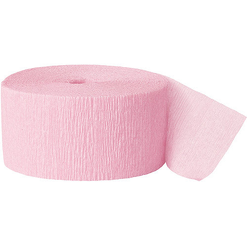 Our pastel pink crepe streamer is perfect to decorate your house. Whether you are decorating for a little girl's birthday, for Valentine's day or for a baby shower, our garland will blend in with any decor! Length: 81 feet. Sold individually.