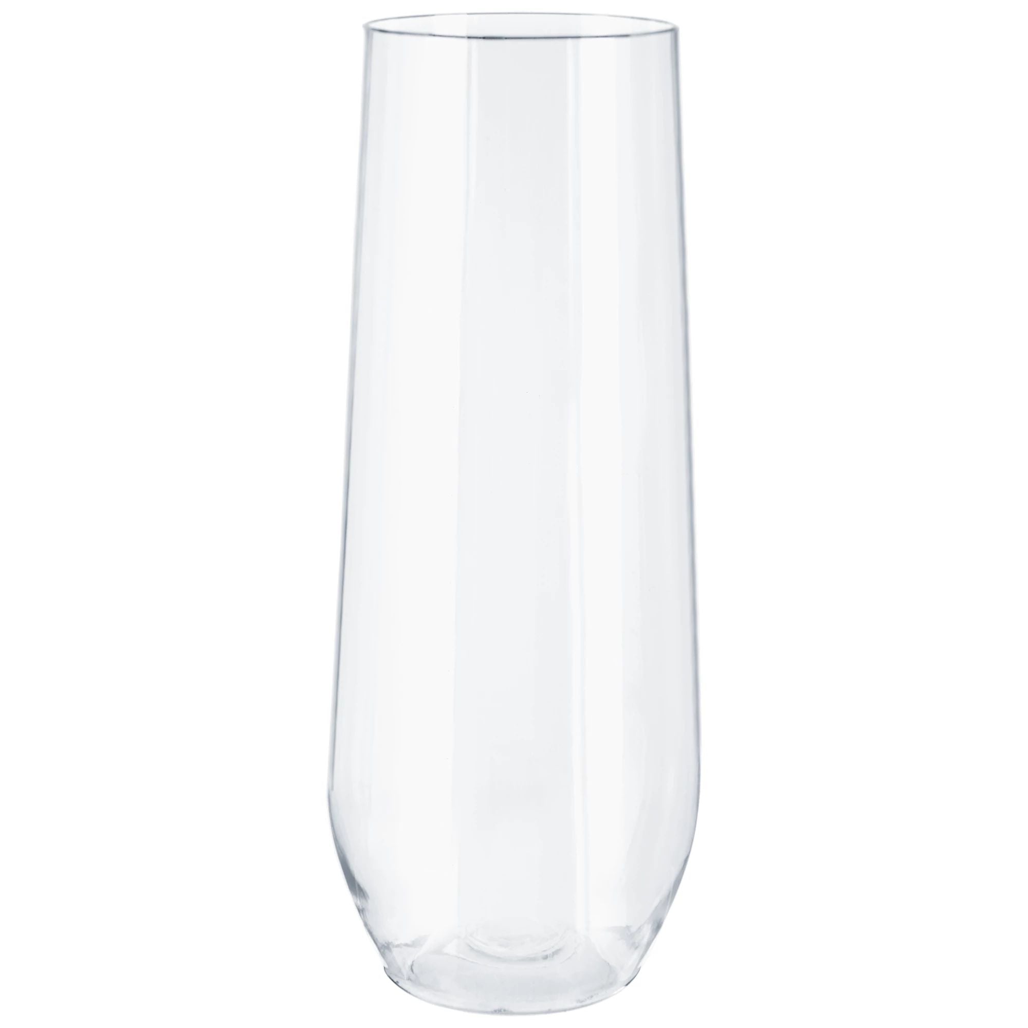 Premium stemless champagne glasses help you sip your bubbly in a modern, fuss-free way. Made of durable plastic, this pack of 20 flutes have a classic shape that elevates any celebration, from New Year’s Eve to weekend brunch. At just 8.5 ounces each, the glasses are compact enough for casual gatherings while still offering enough room for a proper pour. Stash a set in your cabinets for whenever impromptu toasts arise - no stems needed.