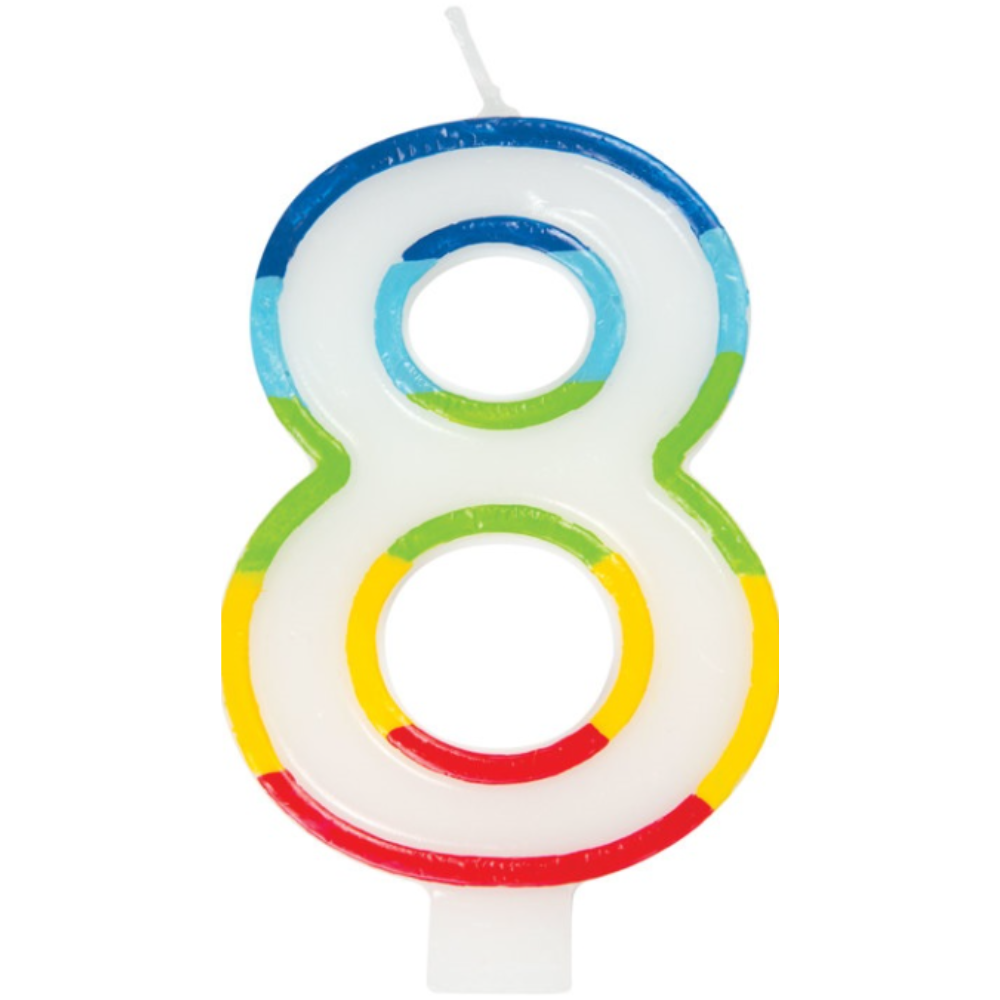 Make the 8th birthday extra bright with this colorful Rainbow Border Number 8 candle! Featuring vibrant rainbow stripes, it’s the perfect cake topper to add fun and flair to any celebration. Easy to use and sure to shine on the big day!