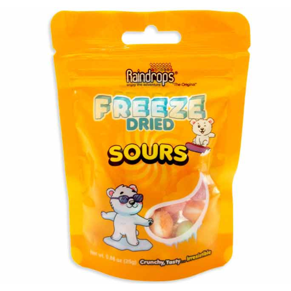 Raindrops Mini Freeze Dried Sours are light, crunchy, and oh so sour! These freeze dried sours have an intense sour flavor that will make your taste buds tingle. In a single serve size peg bag.
