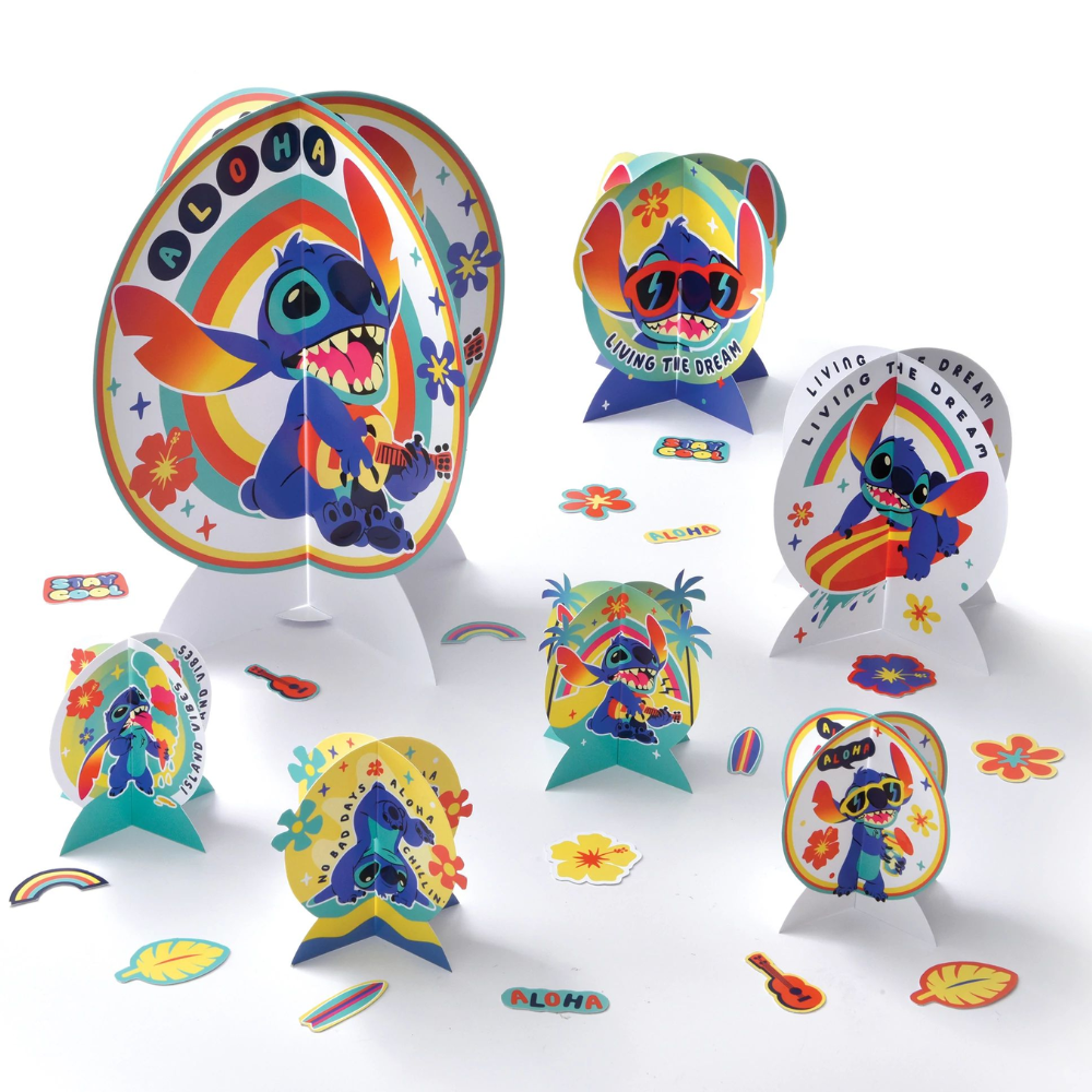 Transform your table into a Stitch-themed celebration with this comprehensive centerpiece kit. This expertly curated collection includes one impressive 12½" focal piece to anchor your display, two 7" medium centerpieces for balanced visual interest, and four 4³⁄₁₀" smaller accents for layered depth. Twenty-four 2" confetti pieces complete the ensemble, allowing you to customize arrangements and scatter festive details across your venue. Perfect for birthday parties, themed events, or character-inspired gatherings, this kit provides everything needed to create a coordinated, professional-looking tablescape without the hassle of sourcing individual decorations.